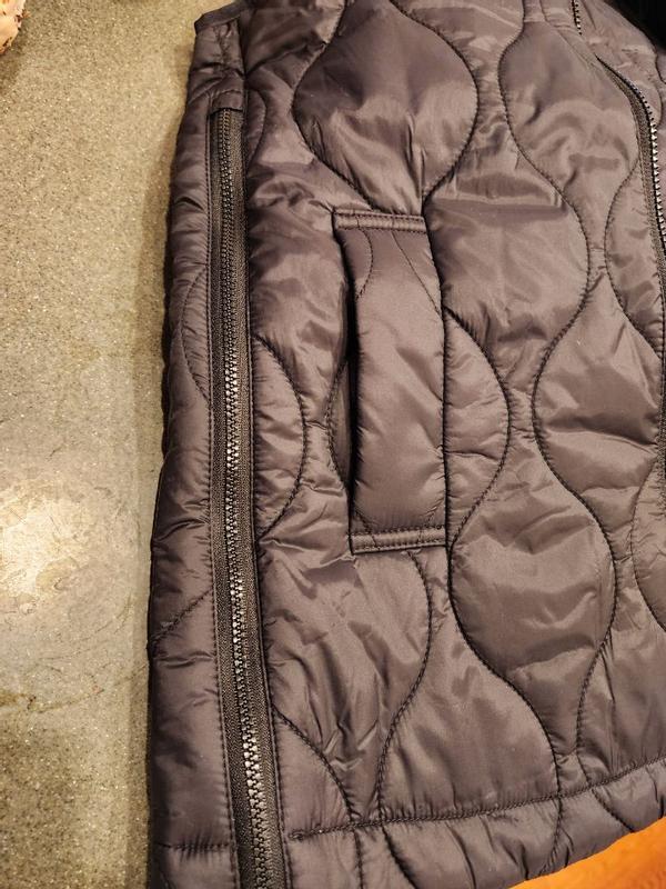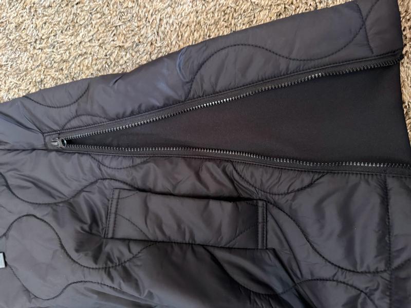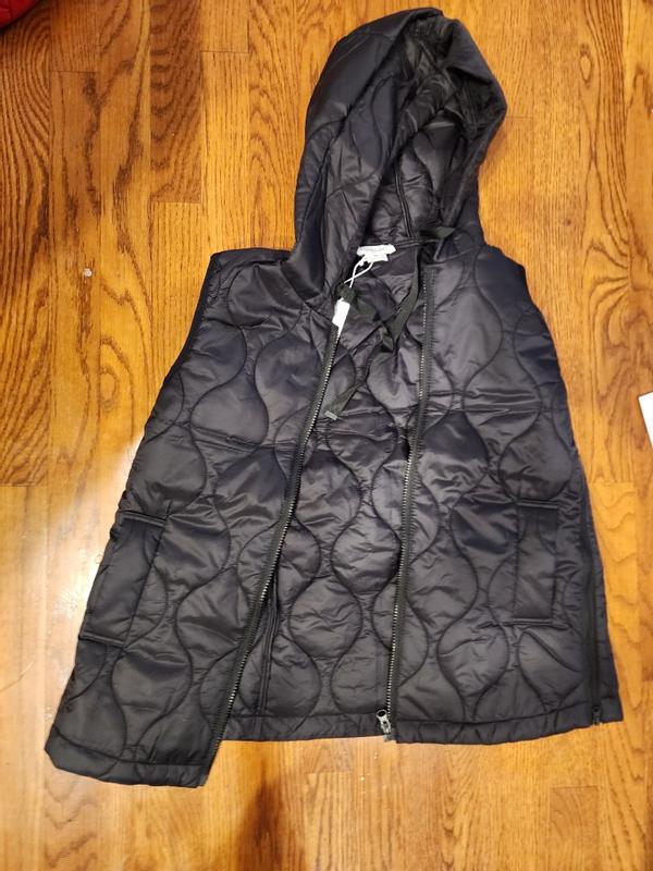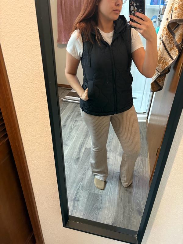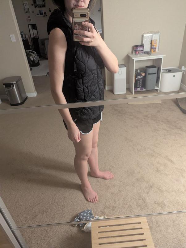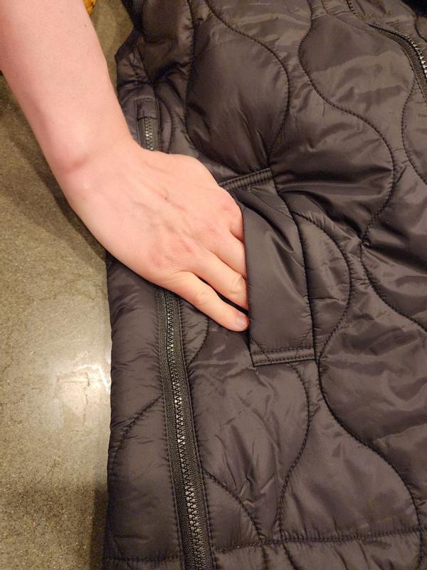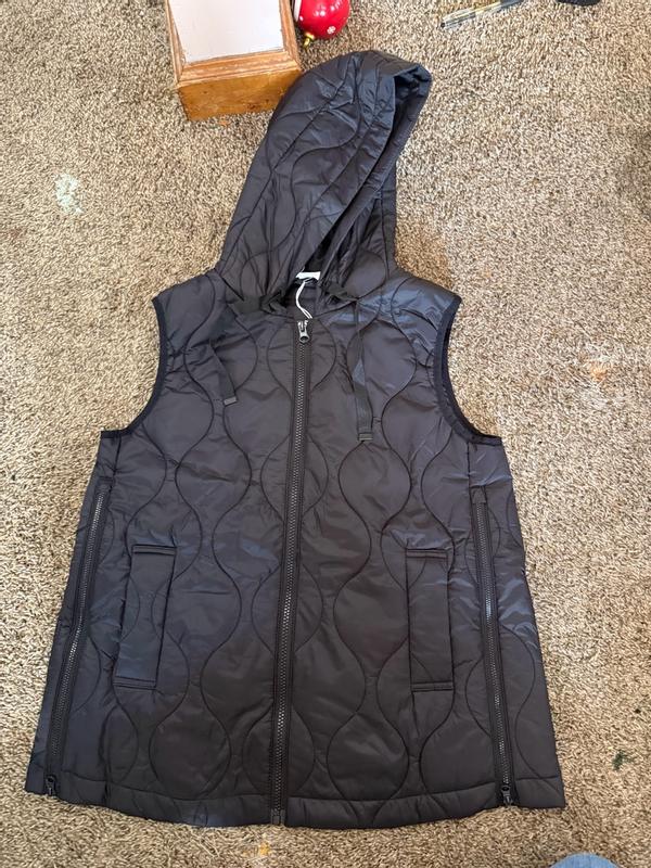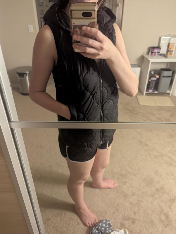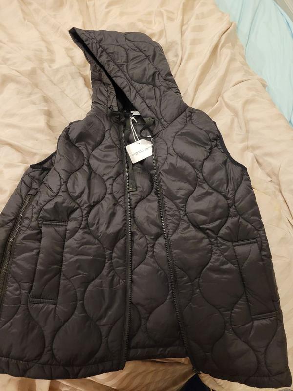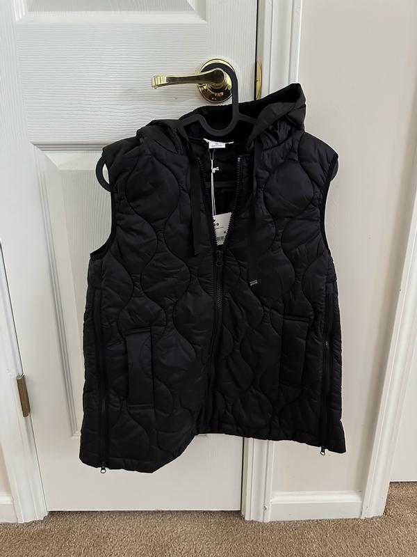 This vest has a lightweight, quilted feel that’s perfect for layering over a tee or under a coat — it isn’t bulky, which I really appreciate. It’s meant to be bump-friendly if you’re pregnant, with side zip panels to expand as needed, but it’s still comfortable and flattering even if you’re not expecting.