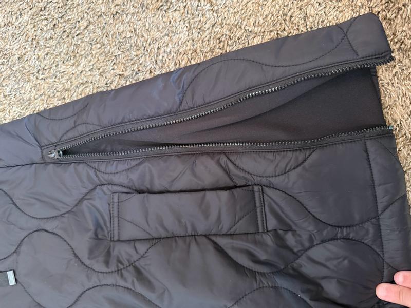This vest is very wellcrafted and warm. It has zippers on the side to adjust it as necessary to accommodate your growing bump. Unfortunately, I was sent an XS, and that is way too small for me. I am super sad about it but that does not take away from the great quality of this vest.