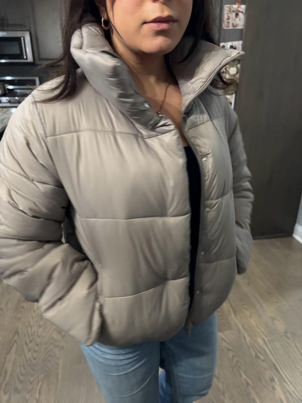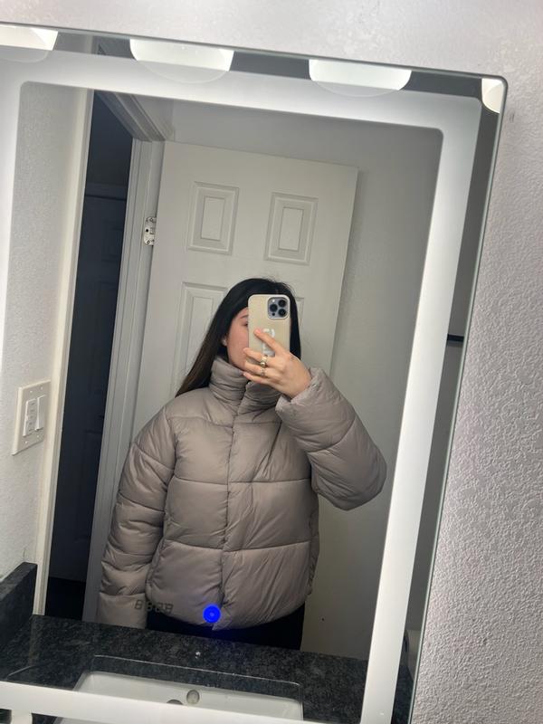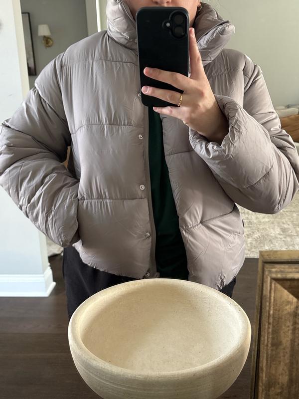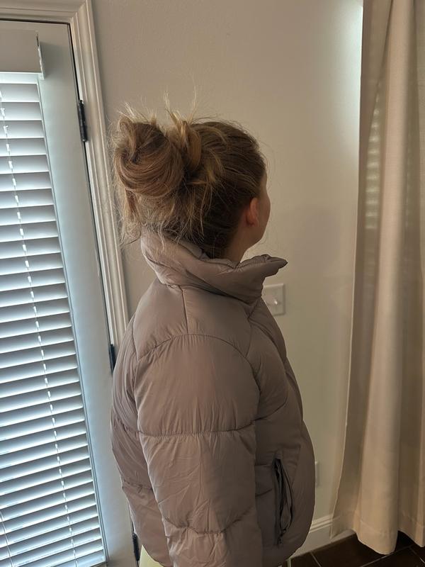 This is such a cute puffer! I love the color and length. It does a good job keeping you warm, but I would probably not suggest wearing it on super cold days. Overall I really do love this coat.