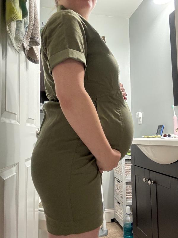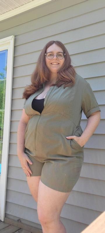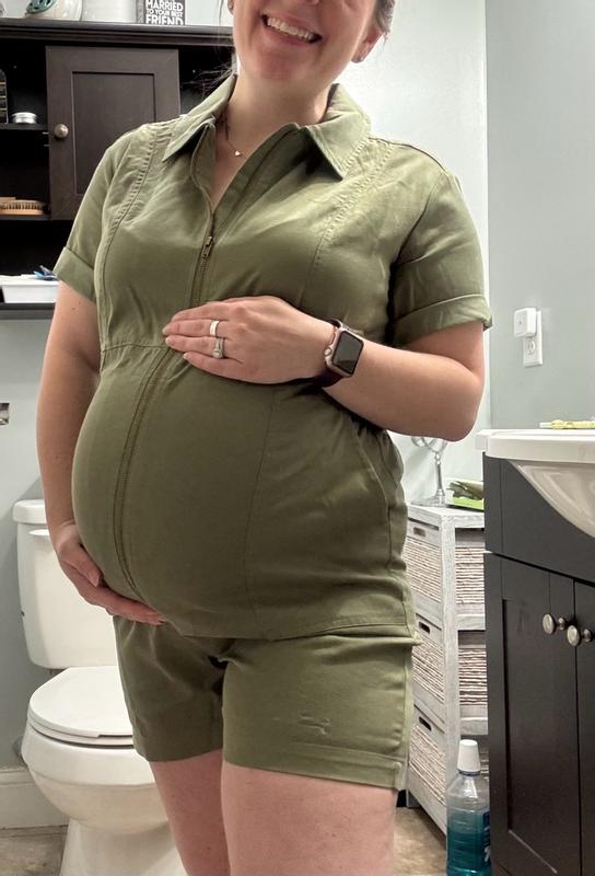 First of all this short coverall is absolutely beautiful, it enhances my belly so cute the color is my fav and soft fabric super comfy, versatile