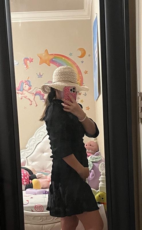 Cute black dress to be in style while pregnant. Material stretches nicely to give room for baby. Still fits to show off physique. Made well to be modern and in style.