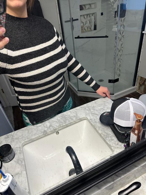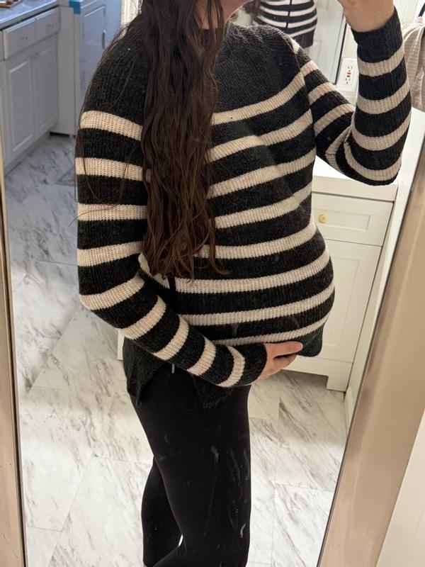 This sweater is so soft and comfortable! I've been loving wearing it this winter. I will say I'm 32 weeks pregnant and it's not quite long enough for me, so this is definitely more of a 2nd trimester or early 3rd shirt. As with most maternity clothes. That being said, I really do love this sweater. It fits well, is soft and not itchy, and it's very warm and cozy!