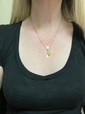 I brought two of these necklaces. The chain and charm are both thin and flimsy. I brought both with the initial J design for my daughters. On each of the necklaces the chain broke. I would not recommend them