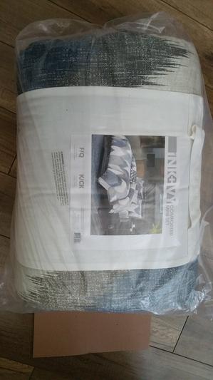 This is a beautiful set. I absolutely love the colors and feel like it gives just enough pop in our room. With this being a very full comforter, unfortunately my washer and dryer are too small (hint the wrinkles) so I would need to use a bigger dryer to get rid of those in the future. Otherwise I love the weight and look of this very much!