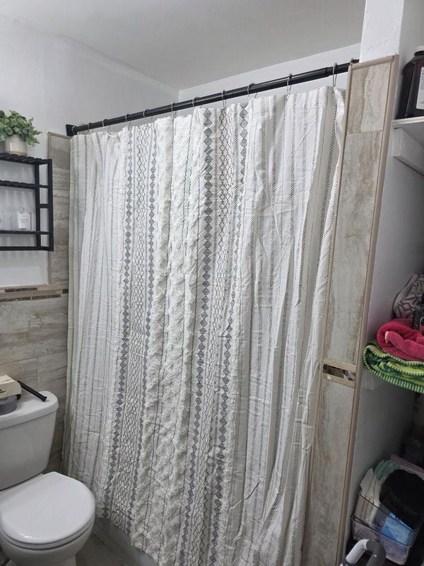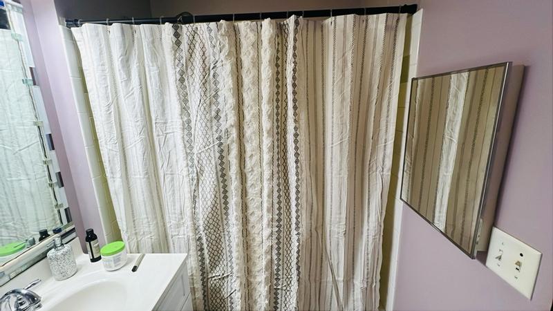 This ink & ivory shower curtain is so beautiful and full of detail. The color scheme works perfectly with my bathroom decor. I love the quality of the fabric and the elegance it portrays!