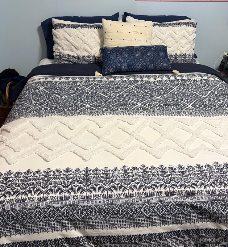 Thank you for your feedback! We’re so pleased to hear the set gave you that luxury hotel vibe—its bold design and vibrant color were thoughtfully chosen to bring a refined, inviting look to your bedroom. Our duvet cover set blends classic charm with modern farmhouse style through its delicate botanical print and beautifully textured tufted chenille detailing. Crafted from 100% cotton, this set offers breathable comfort and natural softness, making it a favorite for year-round use. The chenille tufting not only adds eye-catching texture but is also a testament to the careful craftsmanship behind the design. While the cotton may feel a bit structured or textured at first—especially with tufted finishes—this is part of its natural newness. With each wash, the fibers relax and soften, enhancing the overall comfort without compromising the integrity of the fabric. We're confident that with continued use, the cozy feel will match the elegance you’ve already noticed.