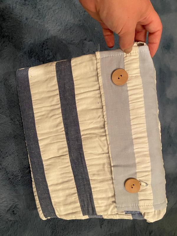 I got this so I wouldn't have to wash my comforters as much. Its a beautiful duvet. It takes some getting use to putting it on the comforters though. It has a soft side which is a light blue color. The other side is blue and white and almost feels textured with the pleats in it. But not in a bad way, still soft. It comes folded up in a bag made out of its own material, and I tell you this because the buttons on that bag are big and almost feel wooden. The buttons on the duvet are smaller and plastic. I didn't realise there were buttons, preferably I would have liked a zipper. I wish it had a zipper so it was easier to close. Overall it's very nice, washed and dried makes it softer, and I such easier and quicker than doing the comforters.