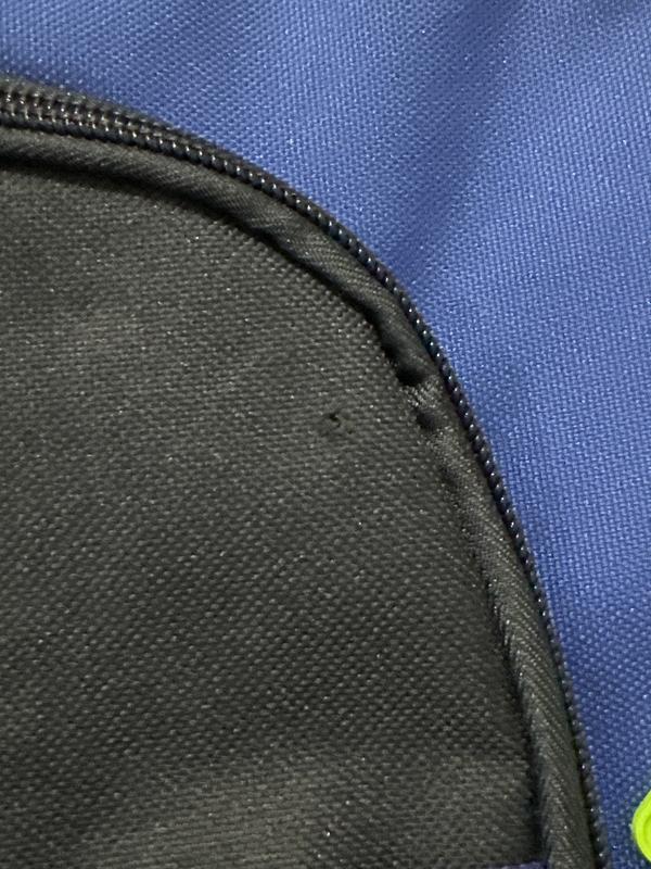 It has hole and zipper tag was missing. Lunch box has some marks which shows that it was used.