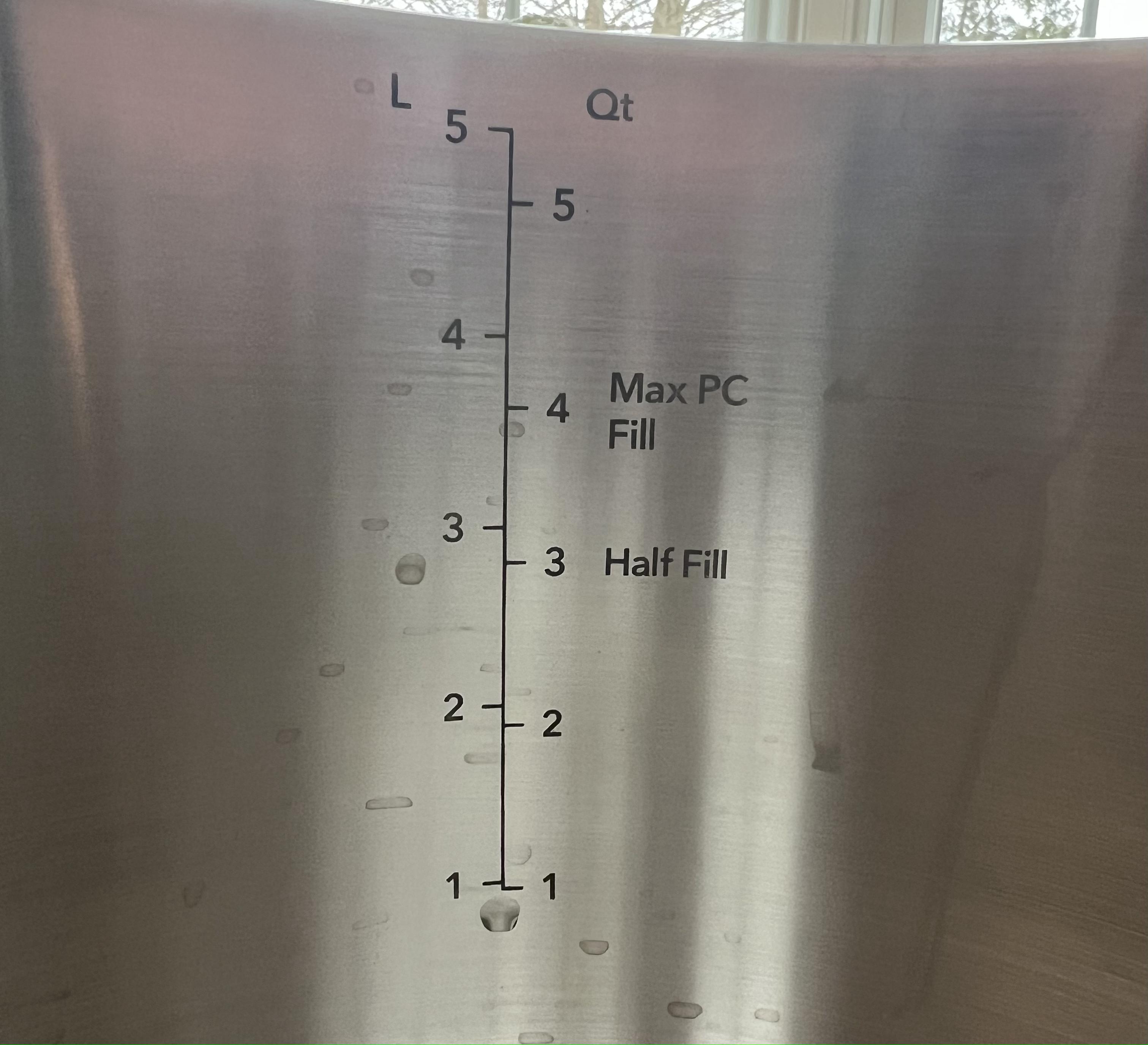 I haven't even used it for the first time and am already disappointed. Upon opening the box and the cooker I find the markings only go to 5L which is 5.28 quarts. The max fill line is marked at 4qt. It's not important to me how much air the thing can hold. Instant Pot would sell more 8qt cookers if they were clear and honest about capacity.