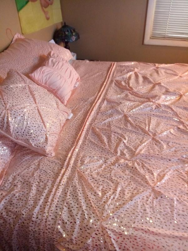 I love this set. My daughter is a pink fan and also has mirrors all over her room. This made a beautiful accent to her room. The quality is nice and feel nice to lay on. I would recommend this to everyone.