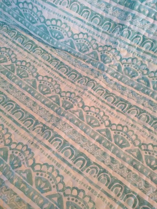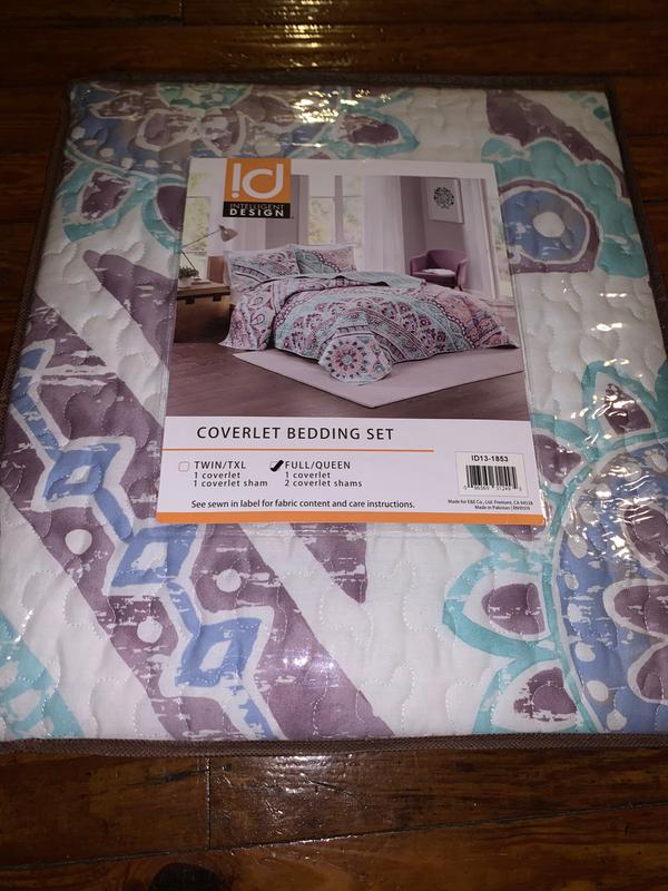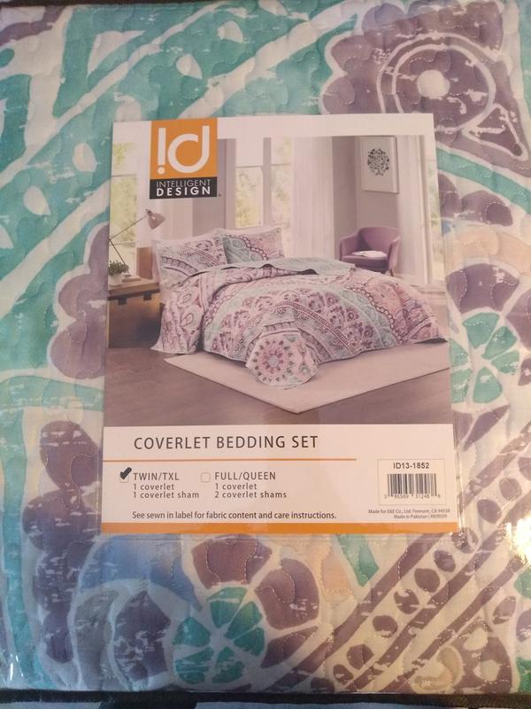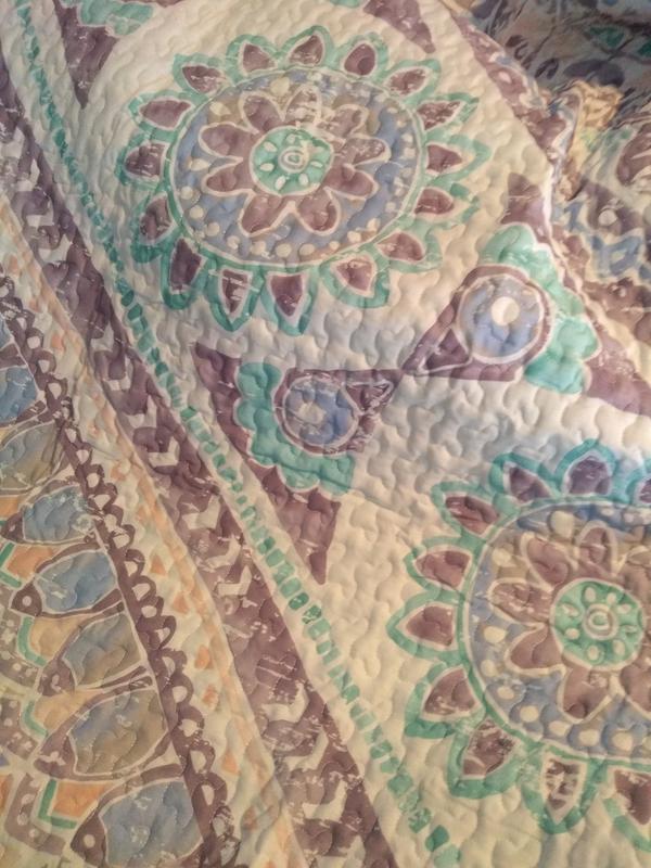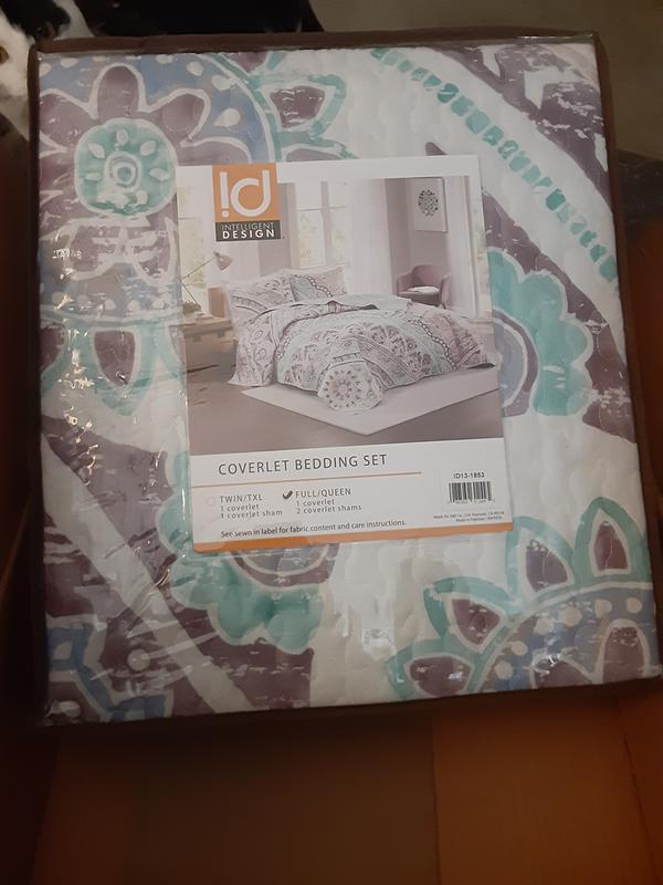 Even though I received Intelligent Design - Lidia Printed Reversible Cotton Coverlet Set #FreeToReview all opinions expressed are truly from my own personal experience with using the product. The Intelligent Design - Lidia Printed Reversible Cotton Coverlet Set in Twin size is a two piece quilt/coverlet set. It comes with one reversible quilt/coverlet and one standard size pillow sham. It is a beautiful boho inspired pattern. The colors are so Spring and Summer like with watery aqua blue, white, and mauvy/purple. The stitching quality in the quilt/coverlet is top notch quality. There were no loose threads or flaws. It was sewn together beautifully. I especially love how it made my small bedroom look so much more airy and light. I totally recommend it to anyone looking for a quality product that is beautiful and functional.