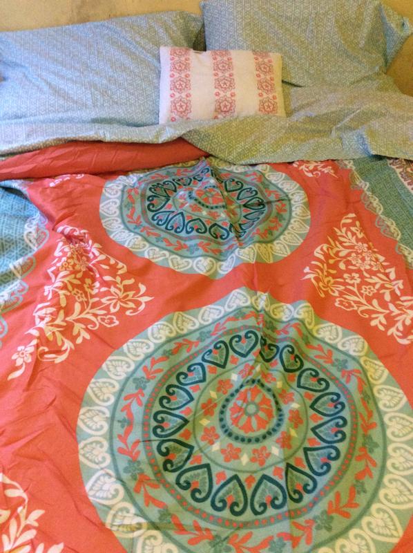 This Loretta brand comforter set is pretty beautiful. Boho style is very impressive and colorful. The pattern is very well designed with nice color combinations. This is twin size comforter set which came with sheet set. This set completes the full bed setting and brings boho vibes to bedroom. Breathable material and did not fade away color or shrink after coming out of washing. Machine wash is easy is maintenance. Fitted sheet sits well on mattress. I became a fan for this brand and would like to shop for different styles.