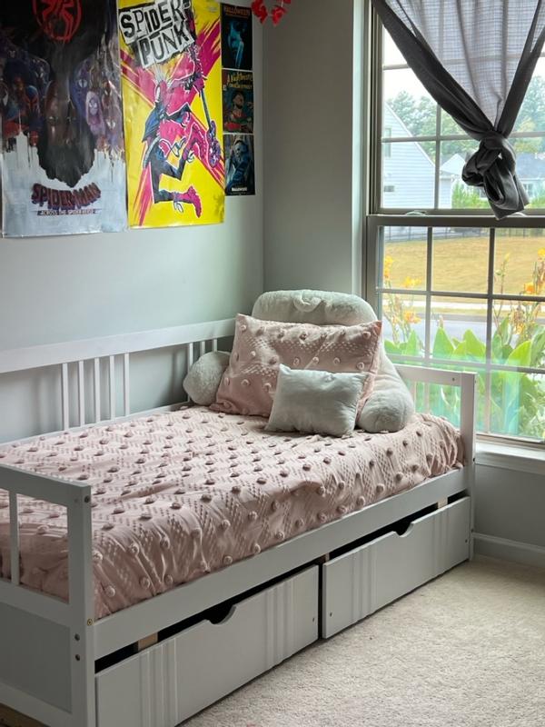 I absolutely love the feel of the comforter but I do not recommend using it on a daily basis due to the fact that the design on the comforter and the material on the top of the comforter attracts all hair and dust. Also if you have a pet friendly home then it's hard to keep clean. Easy to fit into washer and doesn't require multiple dry cycles if machine drying. I would purchase again in a different color at some point.