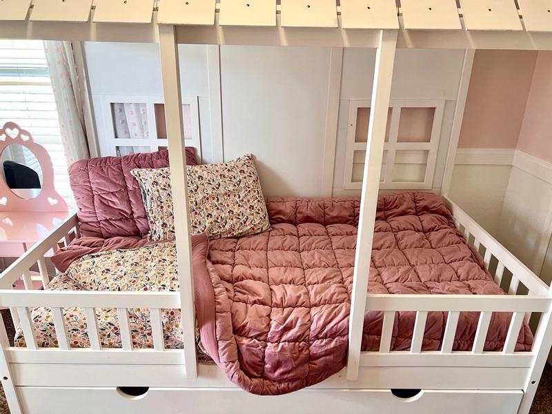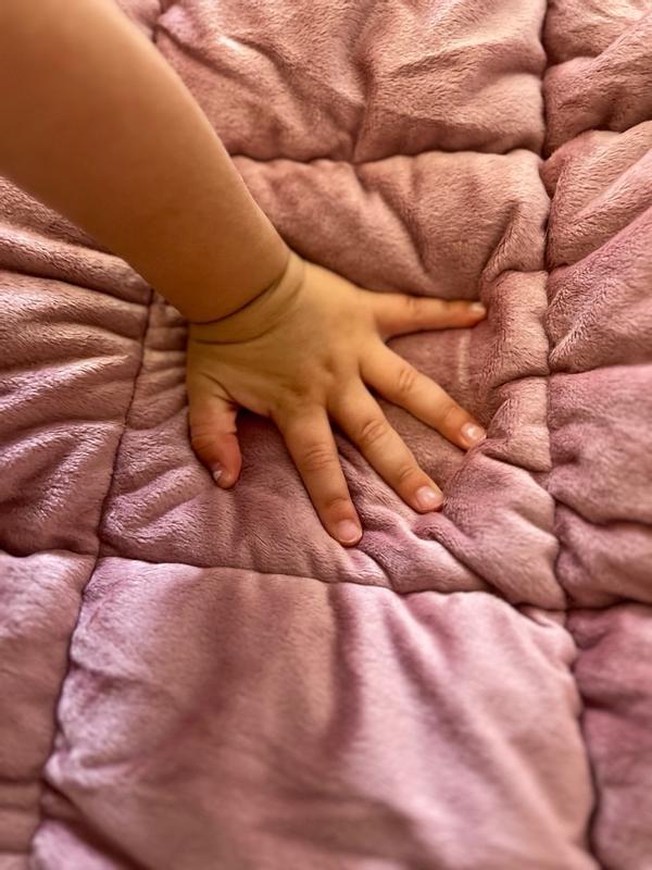 Super soft!! Thick heavy comforter to keep you warm in cold winter temperatures but so velvety soft to lay on top of the bed and play as well! We love this set!