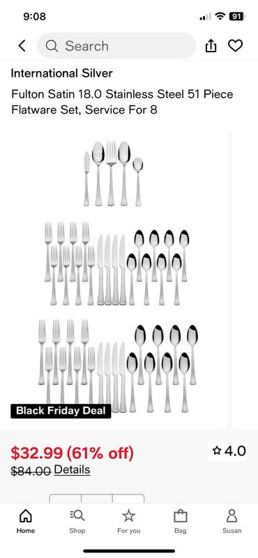 Very disappointed in this set! I thought from Macy's the quality would be much better. These are so thin and will bind very easily. So, if you don't like super thin flatware, DO NOT BUY THESE!!! Would have returned them, but the box was destroyed while opening them.