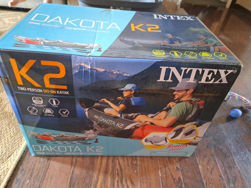 The Intex 68310VM Dakota K2 2-Person Inflatable Kayak is a great kayak! It's a pretty large kayak and fits 2 adults quite well. It is well-designed and durable. I liked all the added features to it. The handles on each end are great for removing out of the water and for transport. The oars are a great length and really easy to assemble. It even comes with a couple bags that you can put your wet stuff in. I also like the bag you can put the kayak in for transport or storage. It comes with a manual air pump. I was a little skeptical of it at first because of how large the kayak was and thought it was going to take awhile to air up. Nope, it literally took about 5 minutes to air up using the manual pump. The only thing I wish was designed or made a little better was the seats. They have Velcro at the bottom that secures them to the boat and a strap that straps around the back of the seat and it buckled to the sides. The strap doesn't really stay tight and causes the seat to lay back and does not support you weight if you lean back on it. Overall, I think this is an great kayak!