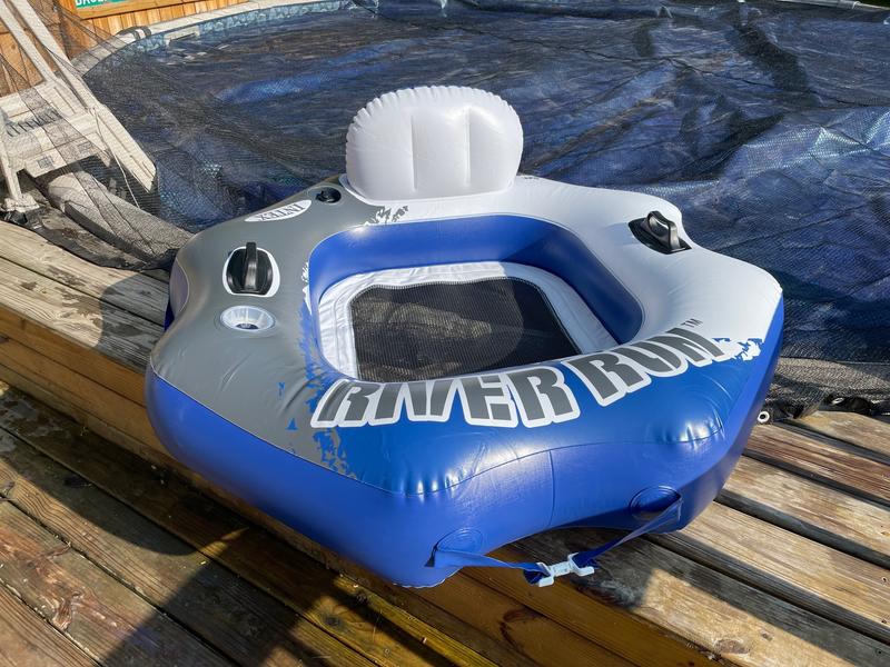 I recently purchased this single person inflatable for a river floating trip with friends. It was easy to blow up. It was also simple to attached to my friends so we could float in one big pod. I liked the back/head rest as well. LOVED the seat/bottom panel so I didn't get brushed by any unwanted river items or animals. Heavy duty and worth the price.
