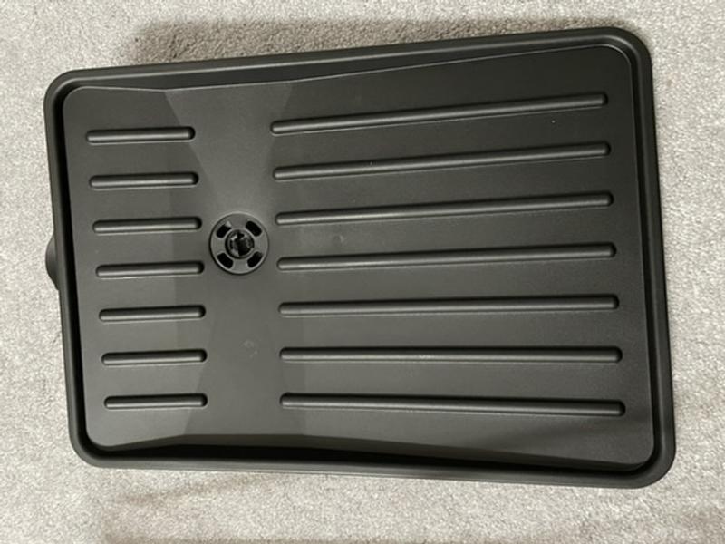 This two tier stainless steel dish rack with plastic drain has really help open up much needed counter space. It works perfectly, is easy to set up, and looks great on our counter. The drain tray has a little flow tube which helps drain right into the sink.