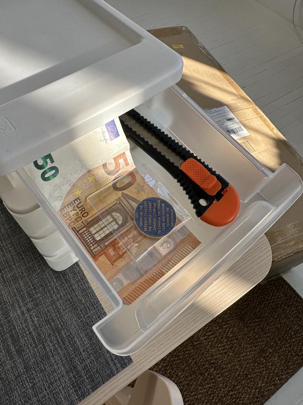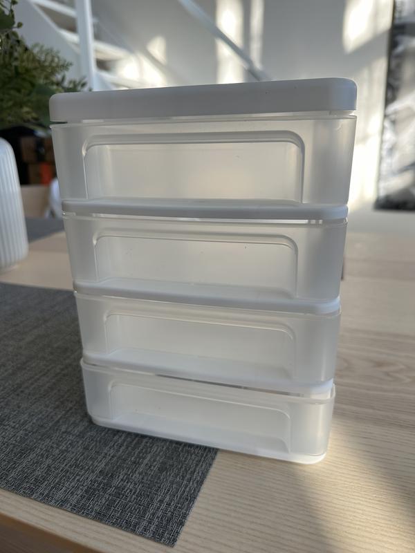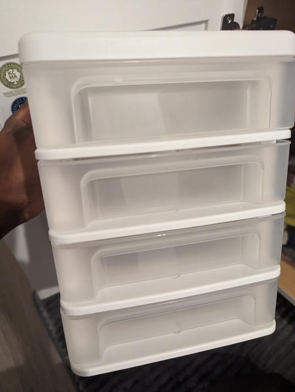 These little drawers are the perfect size for our crafting essentials and tools! They easily snap and stack to each other so you can have what ever storage layout you need. The are slim enough to fit in smaller areas, but still hold a considerable amount of materials and they slide in and out very smoothly. We'll be getting more here soon to help us even organize more.