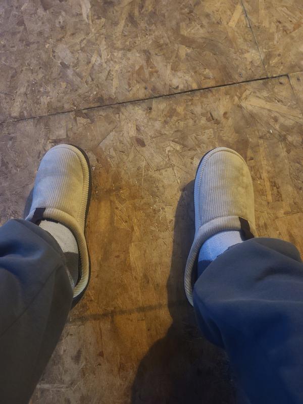 These slippers are comfy enough, but my son really likes having the ankle completely covered. The open ankle is fine, just not his preference. The corduroy is nice and soft and the inside of the slipper is comfortable.