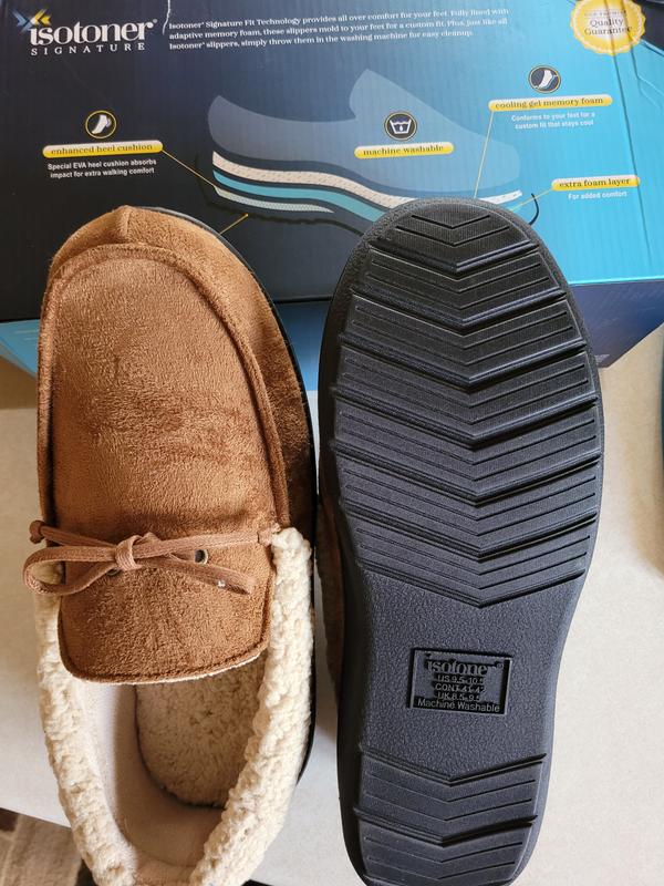 the Isotoner Advanced Memory Foam Micro Suede Vincent Eco Comfort Moccasin Slippers are super comfy. I have tried recycled slippers in the past and they haven't held up to the hype, but we shall see. I do love the concept and the comfiness.