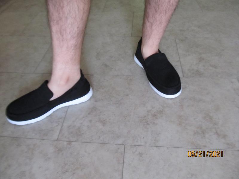 These are nice house shoes. They look great on, so much like a normal shoe that I regularly wear them to walk the dog. Very lightweight and good padding on the soles with a slight arch for support. They have easily become my favorite shoes to putter around in. If you have a wide toe area go up a size for more comfort. There's so much thickness to the fabric that it's a bit snug otherwise, especially with socks.