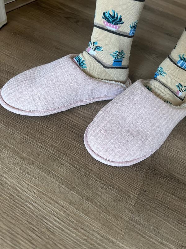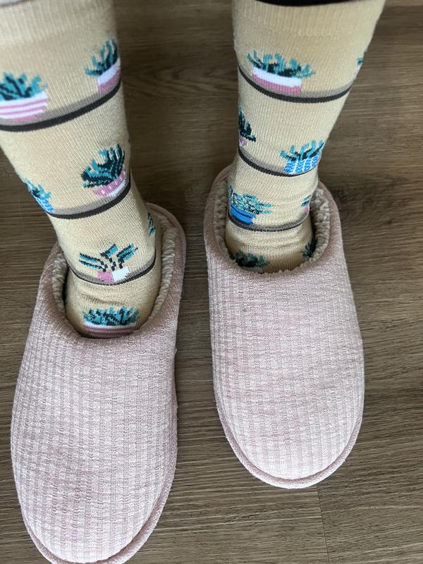 I love these new Women's Fine Gauge Rib Knit Scuff Slippers. They are easy to slip on and off and have sturdy heal so I can walk outside my house in them. They are very cute and extremely comfortable to wear. Great addition to my wardrobe!