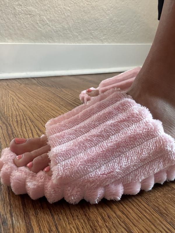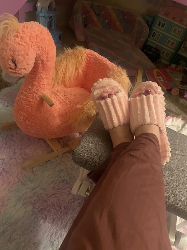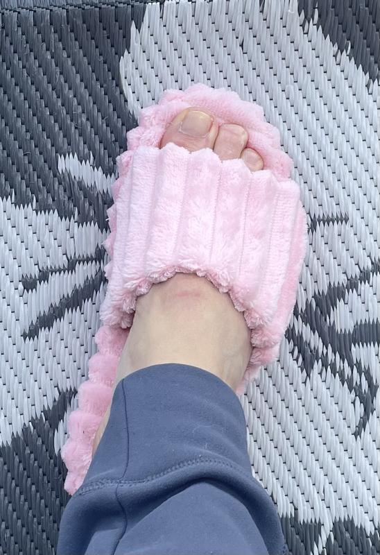 I love these slippers! They are a little fashion and function mixed together! They are comfortable but with the peep toe not too hot like a winter slipper. Perfect to wear right out of the shower or for a comfy girls night in.