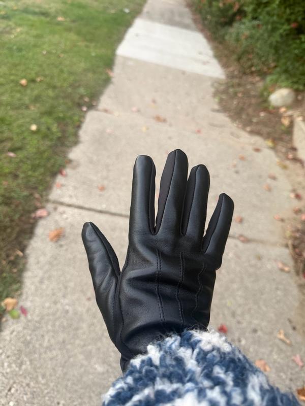 After wearing these gloves for a few weeks, here are some of my takeaways: Comfort: The lining inside is soft and provides a nice layer of warmth, which is great for someone like me who has Raynaud’s. I could definitely see these being useful on infusion days or just for general cold weather use. Features/Durability: The touchscreen feature works fine for phones, but it’s not the best for laptops as the material feels a bit too slippery for comfort. However, I think the material will hold up well in general as long as it is not handled too roughly. Sizing: The S/M fit is kind of awkward. It somehow feels both too big and too small simultaneously. The palm area is loose while the finger length runs short, and I think sizing up would make them too large overall. Style: I really like the black faux leather look. It gives off a clean, slightly corporate goth vibe that I think could work well dressed up or down. Pricing: For faux leather, I wouldn’t spend a lot on these. They’re fine if on sale, but definitely not worth paying full price for. Overall: 3/5⭐️⭐️⭐️
