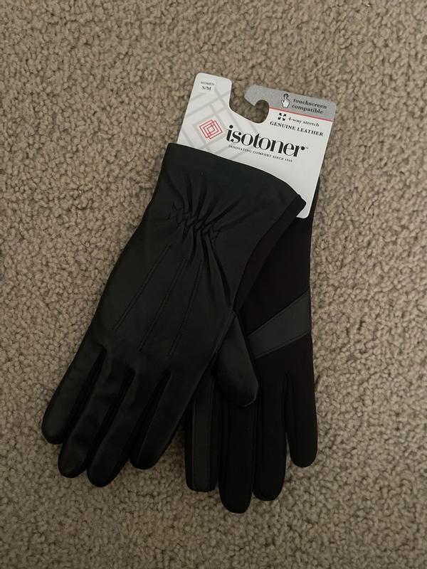 I was incentivized a beautiful pair of black Isotoner women's faux lined, genuine leather stretch gloves in size s/m, thanks to Influenster and Isotoner, in exchange for my honest opinion. These gloves are sooooo comfortable and sleek looking. The fuzzy insides are super soft and warm, and it doesn't stick to you when you pull your hands out. My hands stay warm and dry every time I wear them. The glove hugs your hand without being too tight. They do stretch nicely. I can bend my fingers and grasp things with ease. I love that I don't have to take my gloves off every time I need to use my phone or tablet because they are touch screen compatible, which is very convenient. I would highly recommend these gloves.