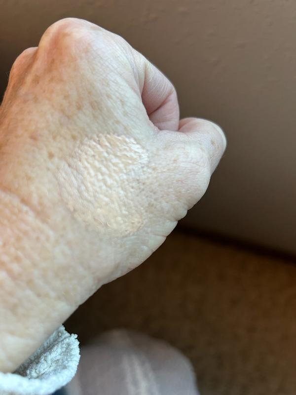 I tried this on my face and did pictures of my hand as well. My hand you can see a more dramatic difference as to how much coverage it provides. It really does blur a lot but still allows a bit of my freckles to peek through. It stays on and lasts all day so the wear time I found to be good. I didn’t notice any super strong scent. This works nicely on dry skin.