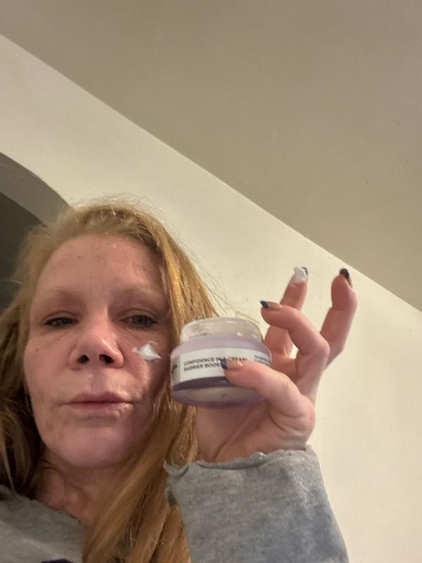 This cream is silky smooth & refreshing. The consistency is thin, fast absorbing & actually FEELS hydrating. I already use the “confidence in a cream” before bed so this barrier cream is great for during the day for me. I’ve had no bad reactions & my skin is really sensitive. I love it! Oh & it does actually work well under makeup, I just let it fully absorb into my skin for about 15 minutes before applying foundation.