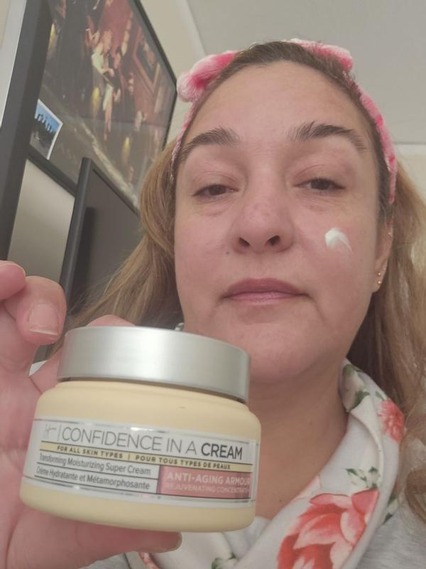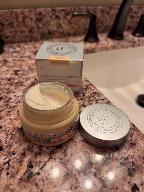 This is the “It” product for this season! My skin tends to usually lean more towards combination T Zone in the fall/winter and oiler in the summer, however, with the drastic weather change this past week here in the south, where one day it is 70 degrees and the next it is 40 - and this cycle continues for weeks on end - my skin needed a bit more hydration. This It Confidence in a Cream was exactly what my skin needed! My skin loved it instantly! Although, I usually prefer a tube or pump style moisturizer for sanitary purposes, I did not mind the glass jar, as the scent was so delightful! By far, one of my favorite fresh scents in a moisturizer- not too fragrant or strong. The consistency of the cream was also just right, not too heavy and did not leave a residue behind. It melted into my skin right away and kept my skin feeling hydrated throughout the day/evening. The fact that this moisturizer also contained Anti Aging benefits was a major perk. I’m a big fan of WATER being the base ingredient, as well as niacinamide being in the top 3. Other anti aging ingredients listed as part of rejuvenating concentrate include Ceramides, hyaluronic acid, peptide-lipid complex and squalane - some of my favorites- all in one jar. So long as my skin continues to love this cream and does not breakout, I will be repurchasing this cream once I run out!