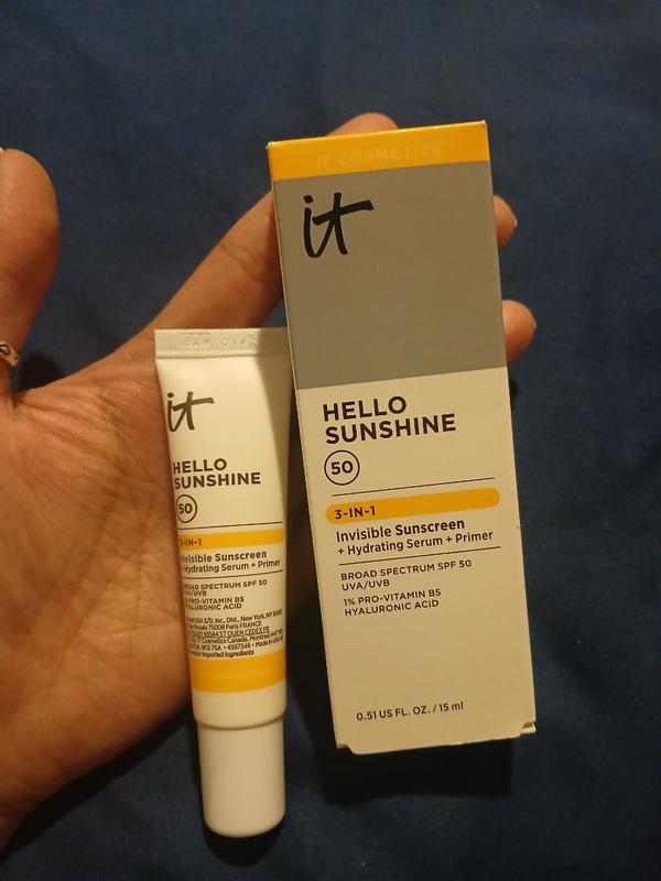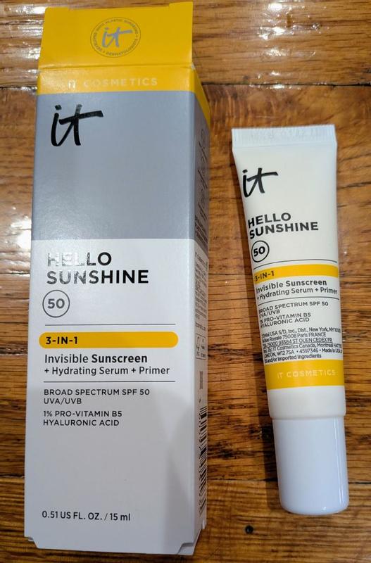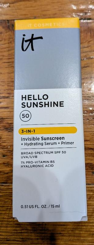 IT Cosmetics Hello Sunshine Invisible Face Sunscreen SPF 50, 1.6 oz This review is from IT Cosmetics Hello Sunshine Invisible Face Sunscreen SPF 50, 1.6 oz