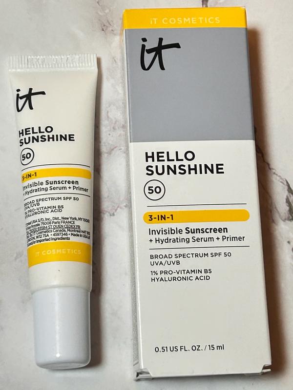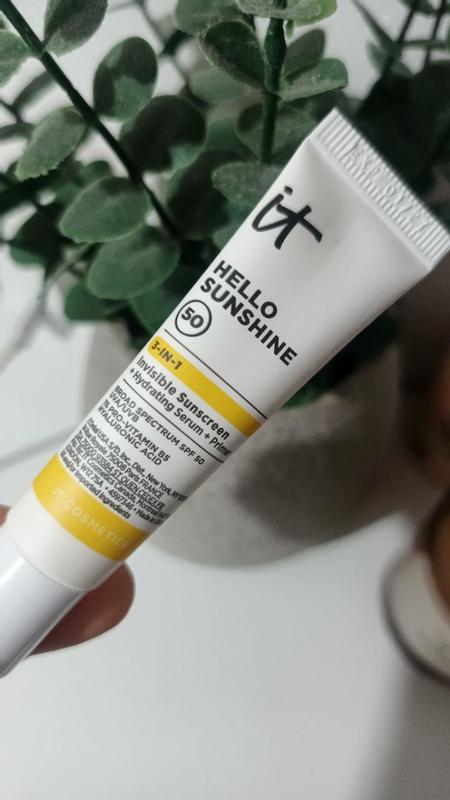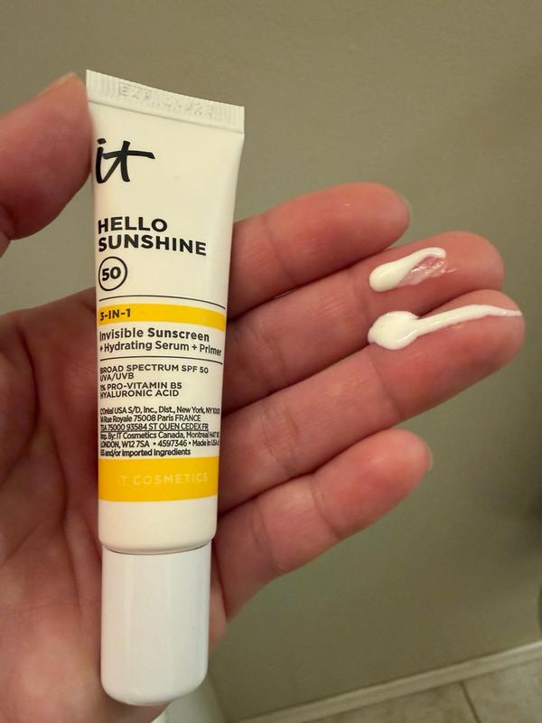 This IT Cosmetics Hello Sunshine Invisible Sunscreen for Face SPF 50 is absolutely amazing. It’s a true multitasking product, working as a hydrating face cream, broad-spectrum sunscreen, and a makeup primer all in one. My makeup applies flawlessly over it, and I love that there’s no white cast when I first apply it. It feels lightweight yet very hydrating on the skin. My skin has an instant glow after applying this sunscreen. I absolutely love this product and highly recommend it.