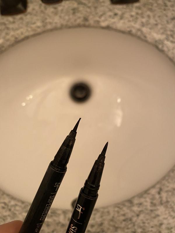 I wasn’t happy with the application of the Superhero Liquid Eyeliner Pen. It starts off ok, but then fades off & is inconsistent. If you try to go over the ‘light’ area again, Whether you do it right away or after it dries, it just pulls up what was already there. It’s frustrating b/c I chose a liquid liner for a quicker and easier application.
