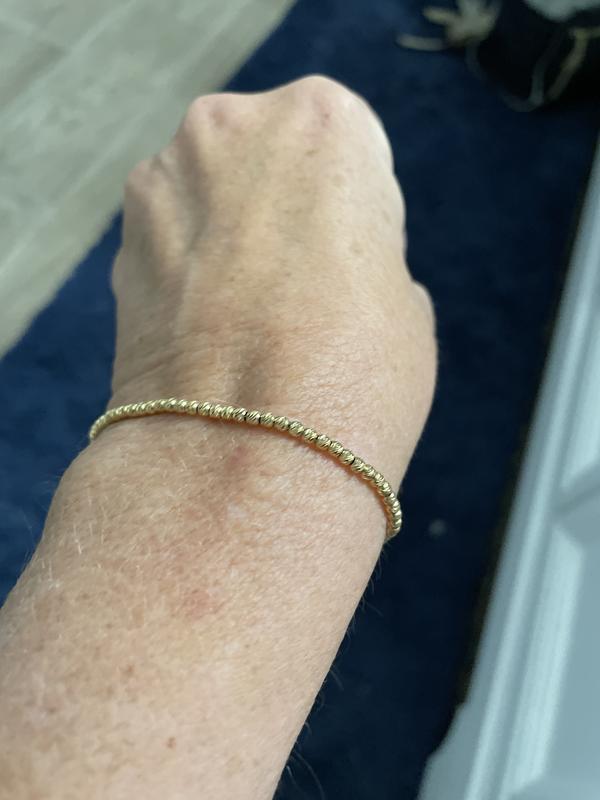 Absolutely fell in love with this bracelet. It’s dainty ends looks great with my other bracelets. I’ve worn it for a few days now slept with it and so far so good.