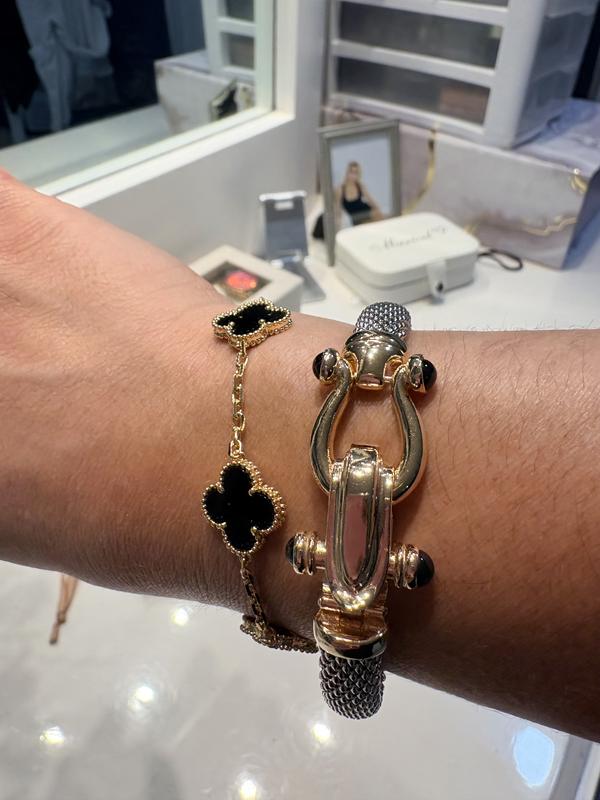 Horseshoe Bangle Bracelet with Black Spinel Accents in Sterling Silver and 14k Gold over Silver
