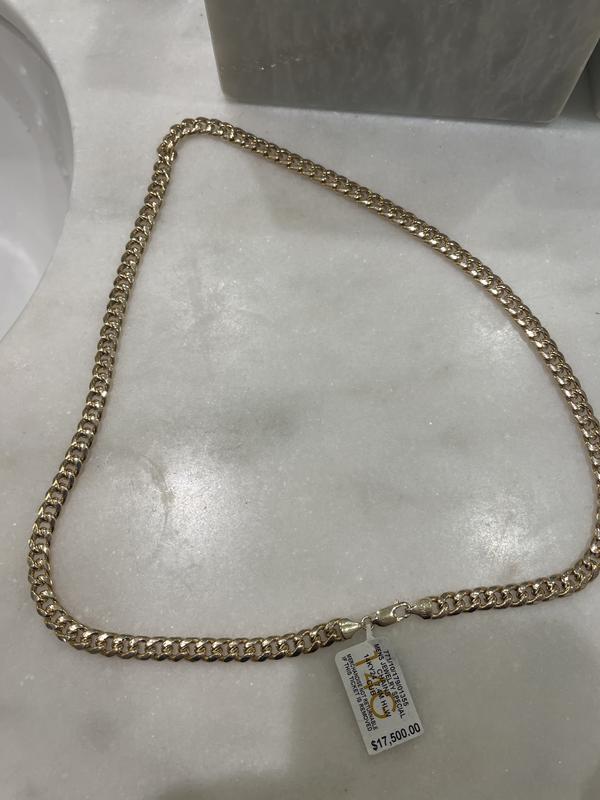 I was speaking with Ashley P. About the specifications of this chain and she sent me the web I.D. # stating this chain was solid gold and would weighed 80-125 grams. So I purchased it and got to the store to pick it up and it was hollow and weighed 34 grams. I brought a digital scale caused obviously no one can be trusted. So I returned it instantly right there at the counter. Do not buy if you want a solid gold chain.