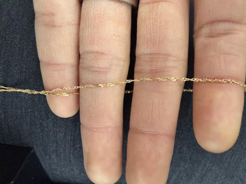 the chain looks pretty but unfortunately it broke in 2 days. It may be a result of poor workmanship because I'm wearing a chain with the same thickness as this for past 2 years and never had issues.