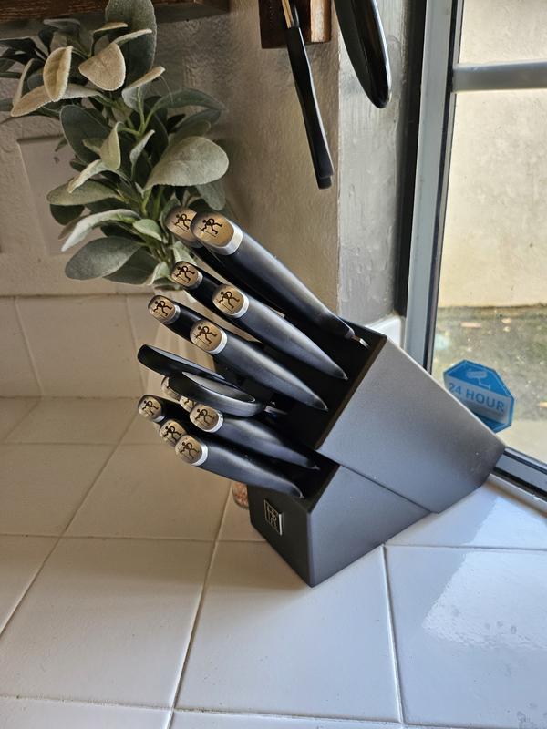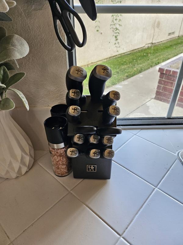 I’ve had this set for several months and I love how versatile it is. It has all of the basic knives that you need. They stay sharp. They are easy to wash. It looks great on my kitchen counter without taking up too much space. I am very pleased with my knife set!