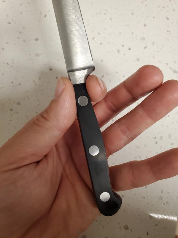 Bought these to go with my Zwilling Pro S set because the Zwilling Pro S steaks knives are far to expensive for my limited use of steak knives. I must say these are very nice, sharp, and my set didnt have defects like i have seen in some reviews. They also match the Pro S set perfectly. I have pretty large hands and don't find the handle size to be of issue as in some reviews. Would recommend to any one looking to match their higher end sets but don't want to pay that much.