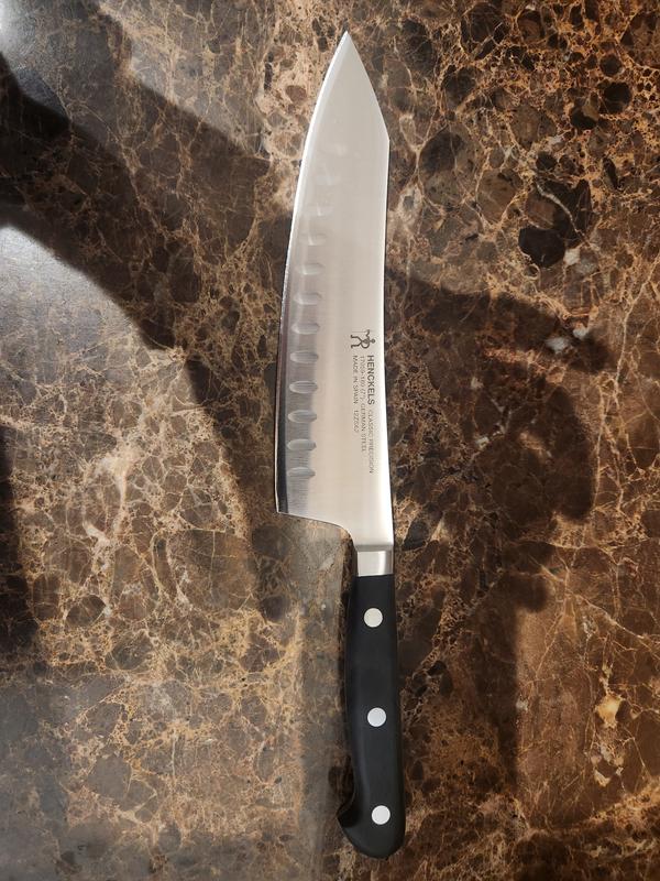 Did a lot of research before selecting this knife. Wanted the dimples, a rocking blade, a smaller blade than my chef’s knife and a handle style to match the original Henckels set I’ve been using for 25+ yrs. Excited to try this newest addition to my collection!