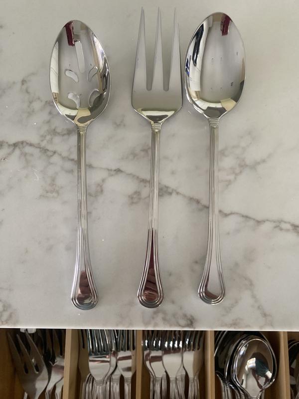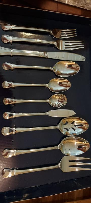 Love my Henckels Astley 18-10 flatware set! It’s a setting for 12 plus 5 serving pieces and arrived in perfect condition. All the pieces in this Astley design are perfectly sized and high quality at 18-10 stainless steel.