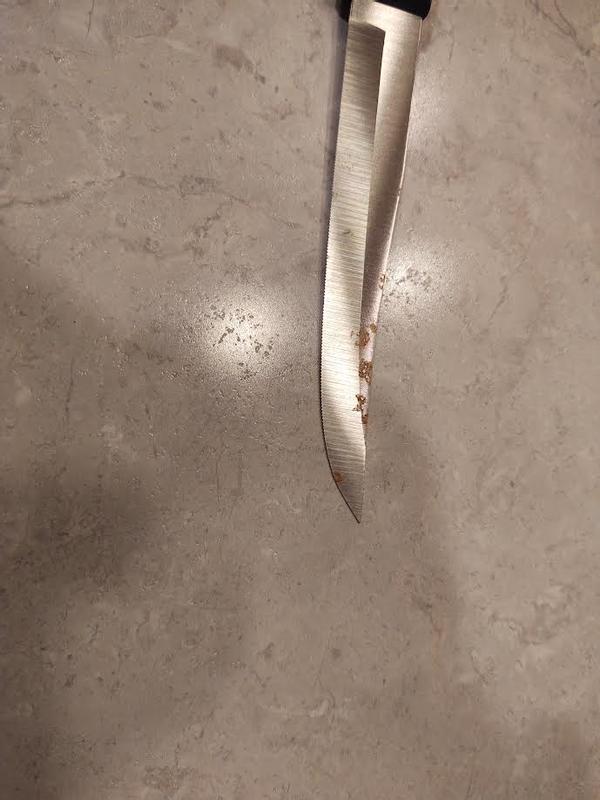 Knives are not really knives, but saws. They have no knife edge, just a hacksaw blade type edge that rips your food apart. In addition, they are NOT stainless steel. The first picture is on of these "knives" after 2 weeks and it's already rusting. The second picture is a knife from an inexpensive set I purchased in 1992 off a TV ad, nearly 33 years and still no rust!
