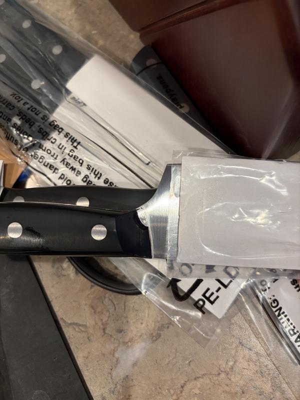 Beautiful set of knives in a sturdy block! Great addition to our kitchen. Will pass them down for generations to come.
