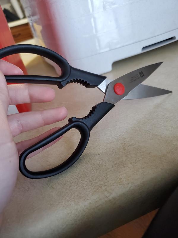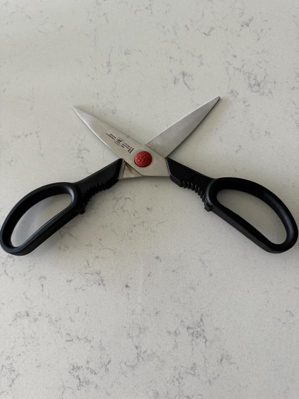 J.A. Henckels is a very reputable brand and I'm glad I purchased these kitchen shears. They are a nice size and have sharp blades. I use them daily on so many things in my kitchen and am very pleased with this purchase. Would certainly recommend them.