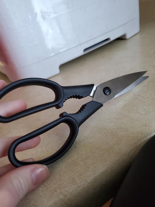 These kitchen shears handle well and gets the job done for me. Good quality and price.