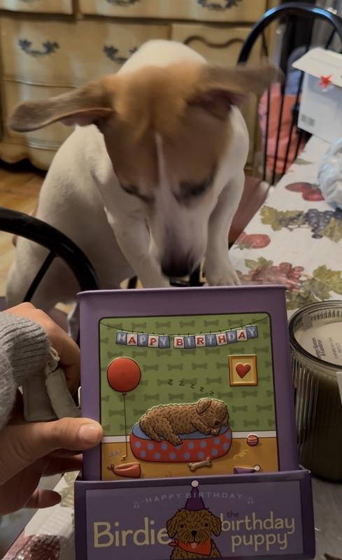 This classic Jack-in-the-Box will delight for years to come. Turn the handle and "Happy Birthday" plays until the plush puppy pops out, ready to celebrate. The beautiful tin box features colorful, embossed scenes of hand-drawn original art. Suitable for ages 3 plus.