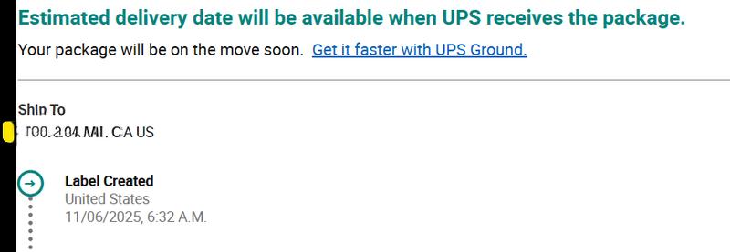 I placed this order November 5th. Expected arrival to me was 3-6 business days. That has now passed. In addition, your package tracking directs me to UPS, and their site says "Estimated delivery date will be available when UPS receives the package." In other words, they haven't even received the item I purchased from you yet. Who will contact me and tell me when I will actually receive what I paid for??